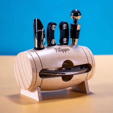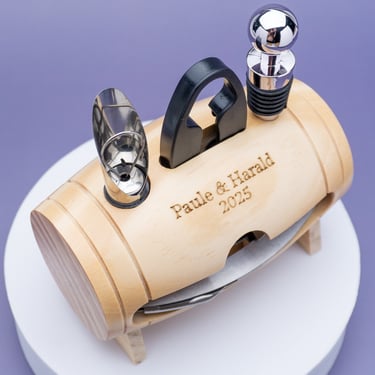Un oggetto che unisce tradizione, funzionalità ed emozione: questo kit sommelier a forma di botte in legno è molto più di un semplice set di accessori per il vino. La sua struttura richiama il fascino delle cantine e delle degustazioni autentiche, trasformandolo in un regalo che racconta una storia.