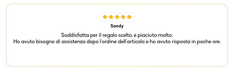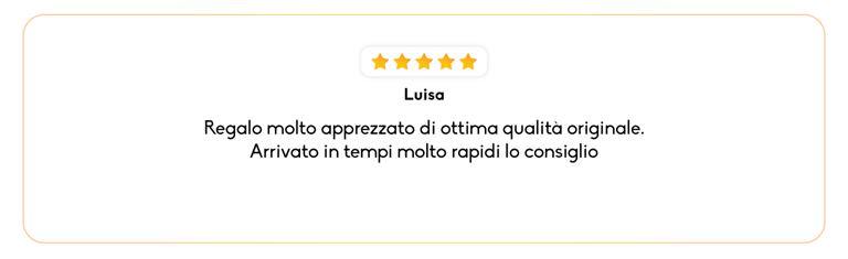 🎁 Ogni ordine include una bozza grafica in anteprima, la confezione regalo fatta a mano con materiali di qualità e un biglietto personalizzabile. Il tutto completato da una spedizione express tracciata, per garantirti sicurezza e puntualità.
